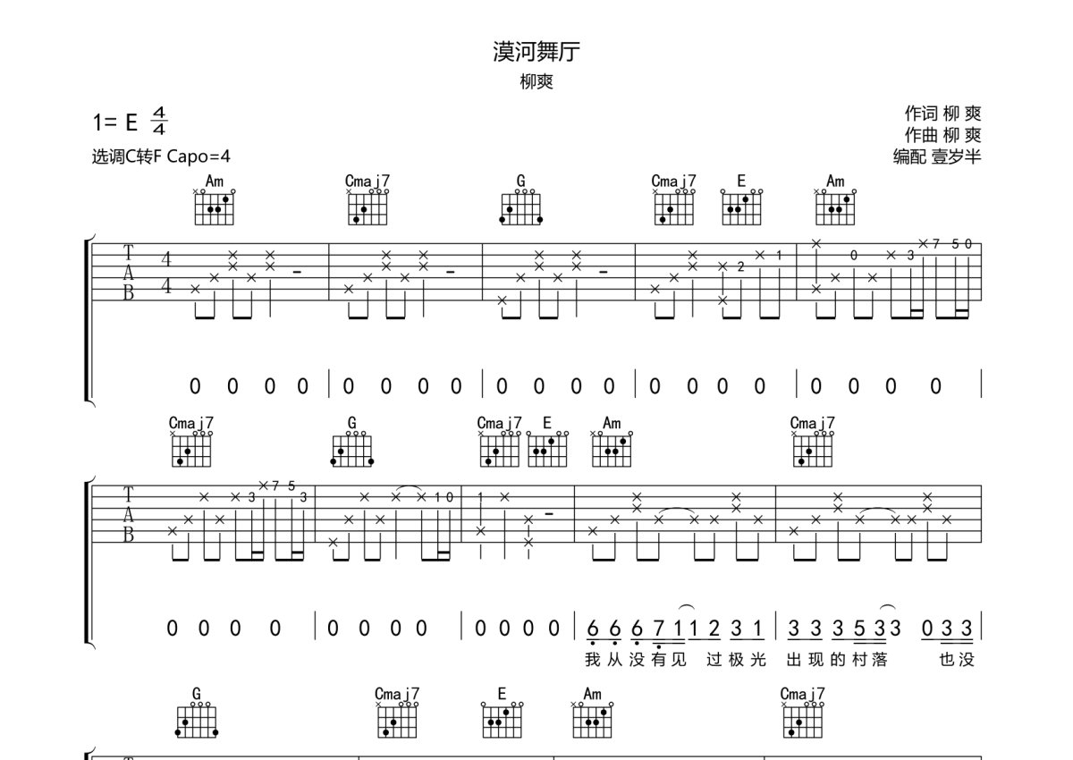 柳爽《漠河舞厅》吉他谱 - C调弹唱六线谱