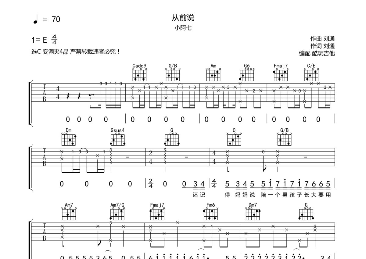 小阿七《从前说》吉他谱 - C调弹唱六线谱