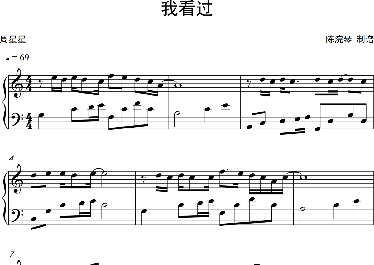《我看过》是周星星演唱的一首歌曲,这份钢琴谱共有两张高清图谱,图谱由 @月隐云先知 编配上传,曲谱配备了相关的音频提供试听,使用这份我看过钢琴谱,可以让你更加方便地掌握这首歌曲的演奏技巧,快来尝试吧。周星星《我看过》钢琴谱。