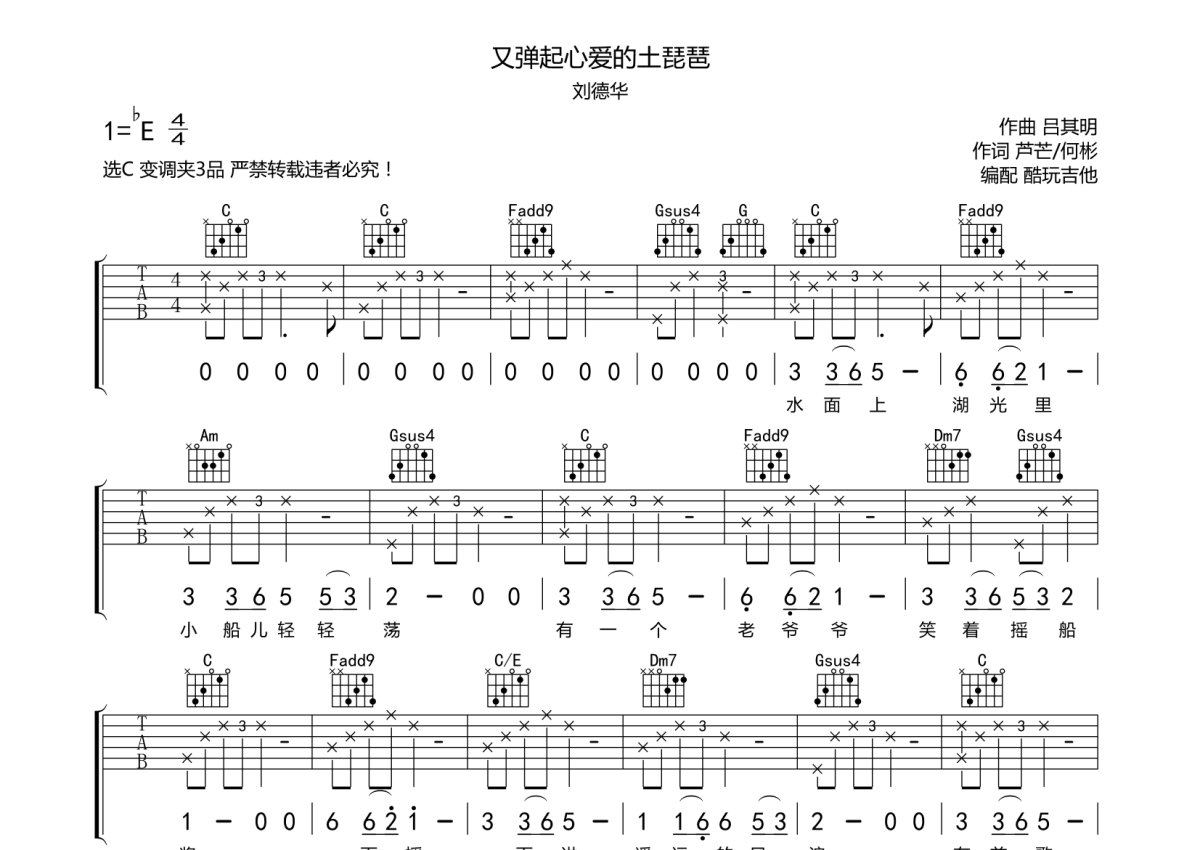 刘德华《又弹起心爱的土琵琶》吉他谱 - C调弹唱六线谱