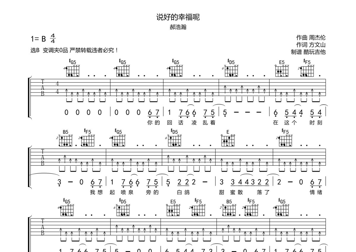郝浩瀚《说好的幸福呢》吉他谱 - B调弹唱六线谱
