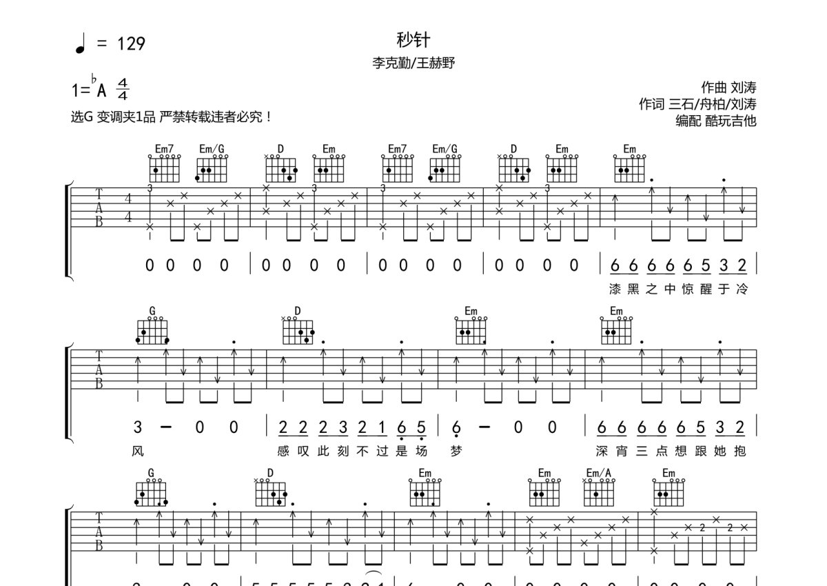 李克勤/王赫野《秒针》吉他谱 - G调弹唱六线谱
