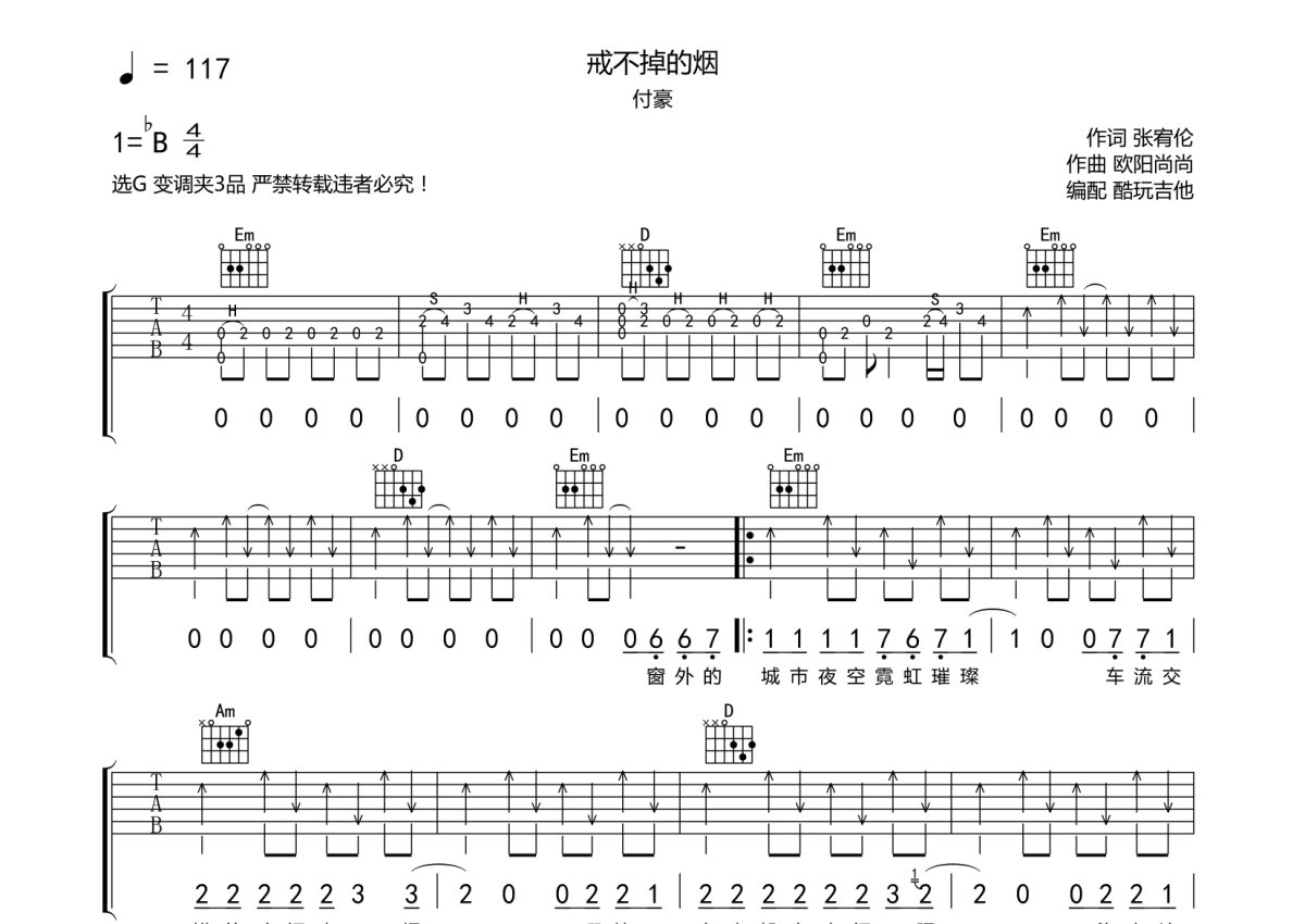 付豪《解不掉的烟》吉他谱 - G调弹唱六线谱