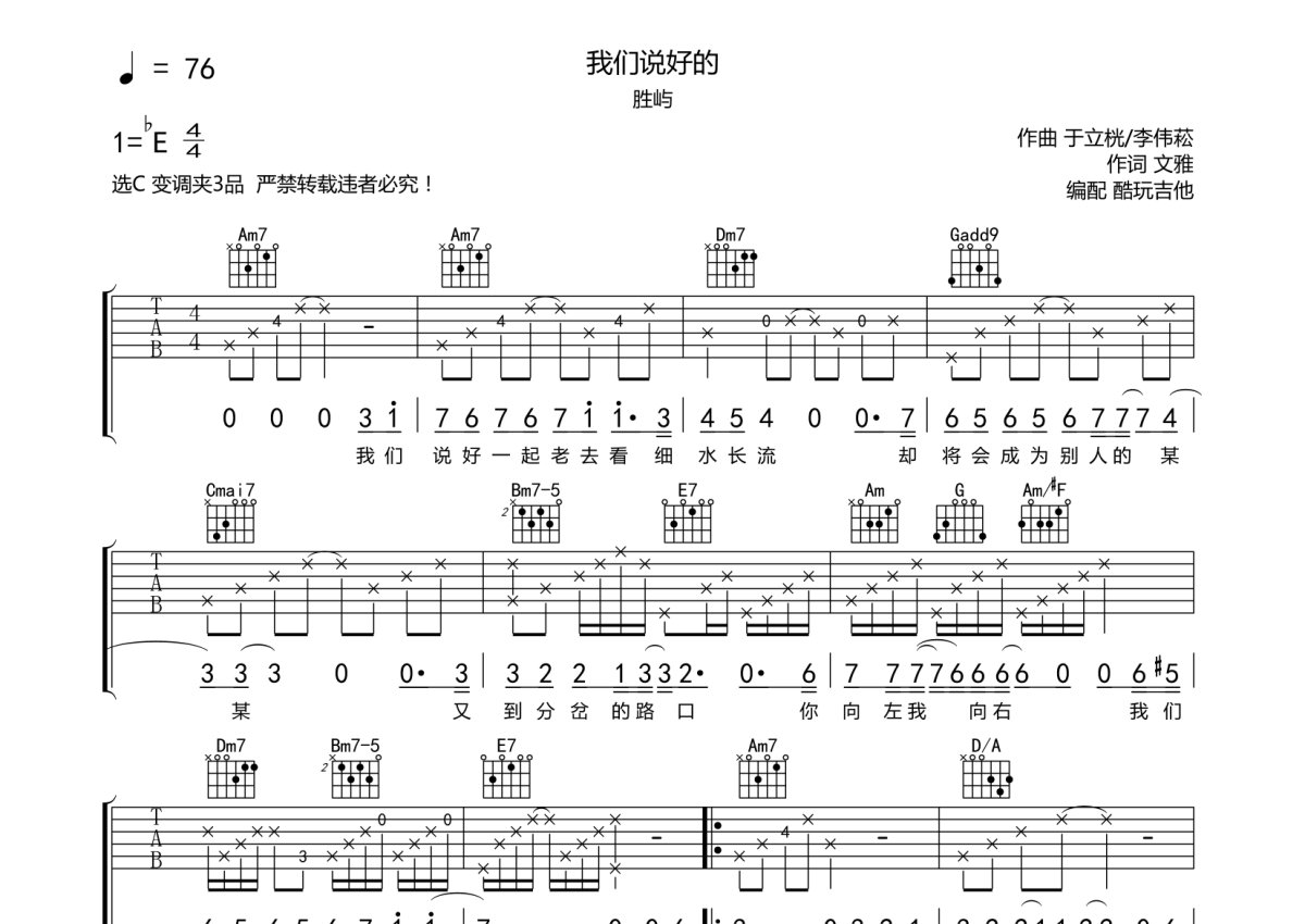 胜屿《我们说好的》吉他谱 - C调弹唱六线谱