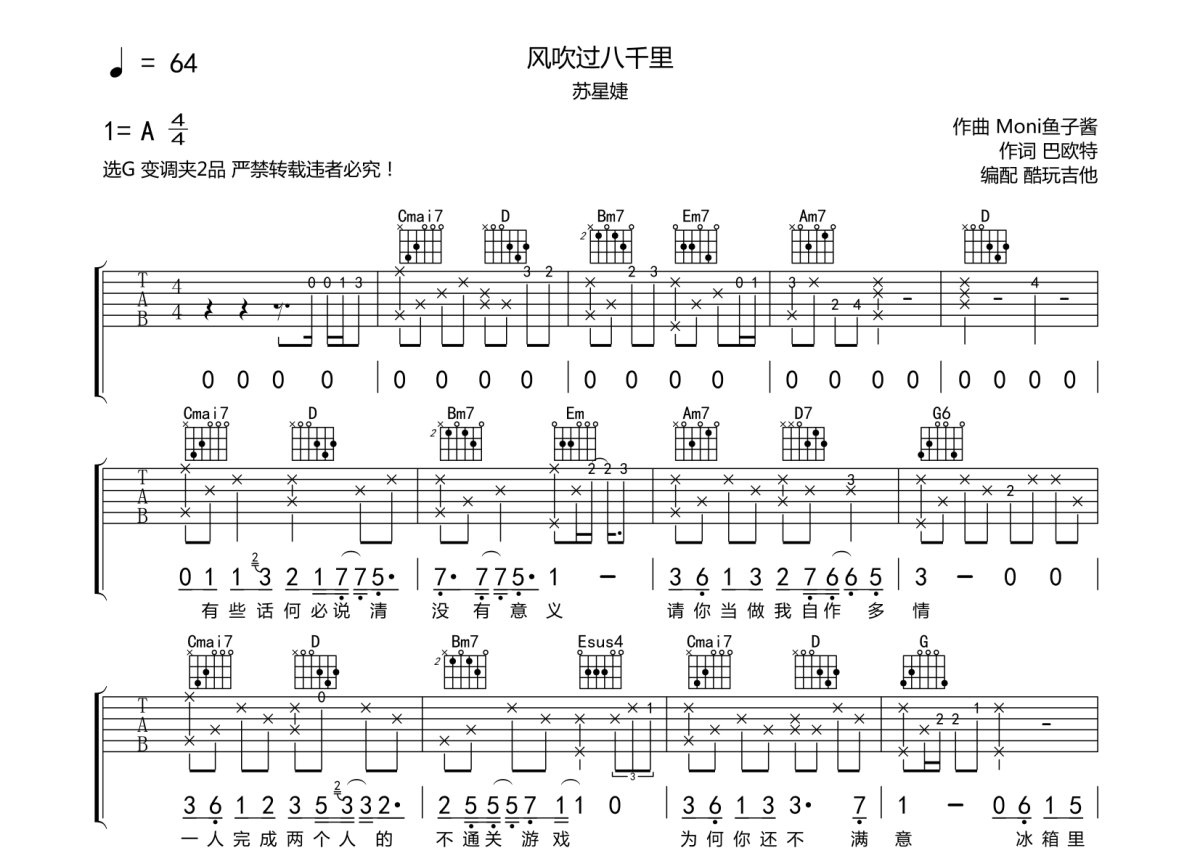 苏星婕《风吹过八千里》吉他谱 - G调弹唱六线谱