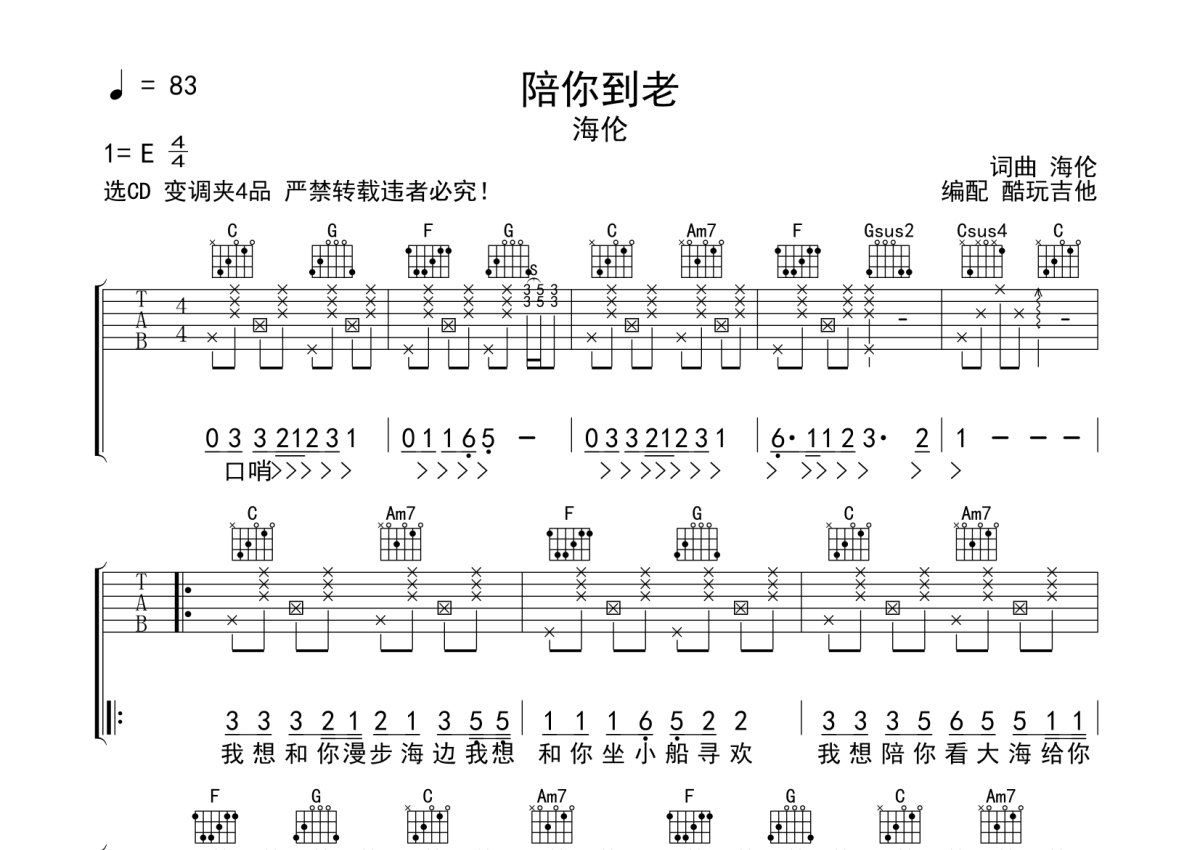 海伦《陪你到老》吉他谱 - C调弹唱六线谱