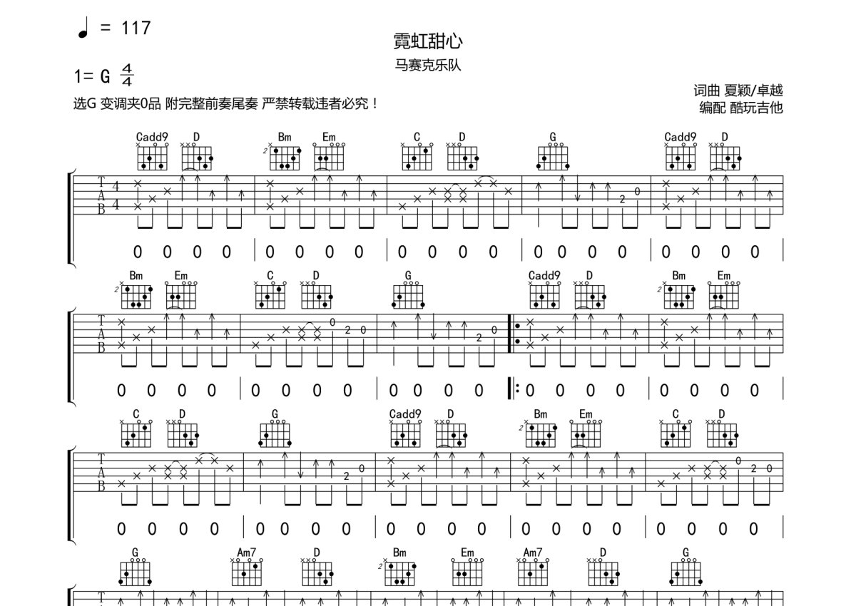 马赛克乐队《霓虹甜心》吉他谱 - G调弹唱六线谱