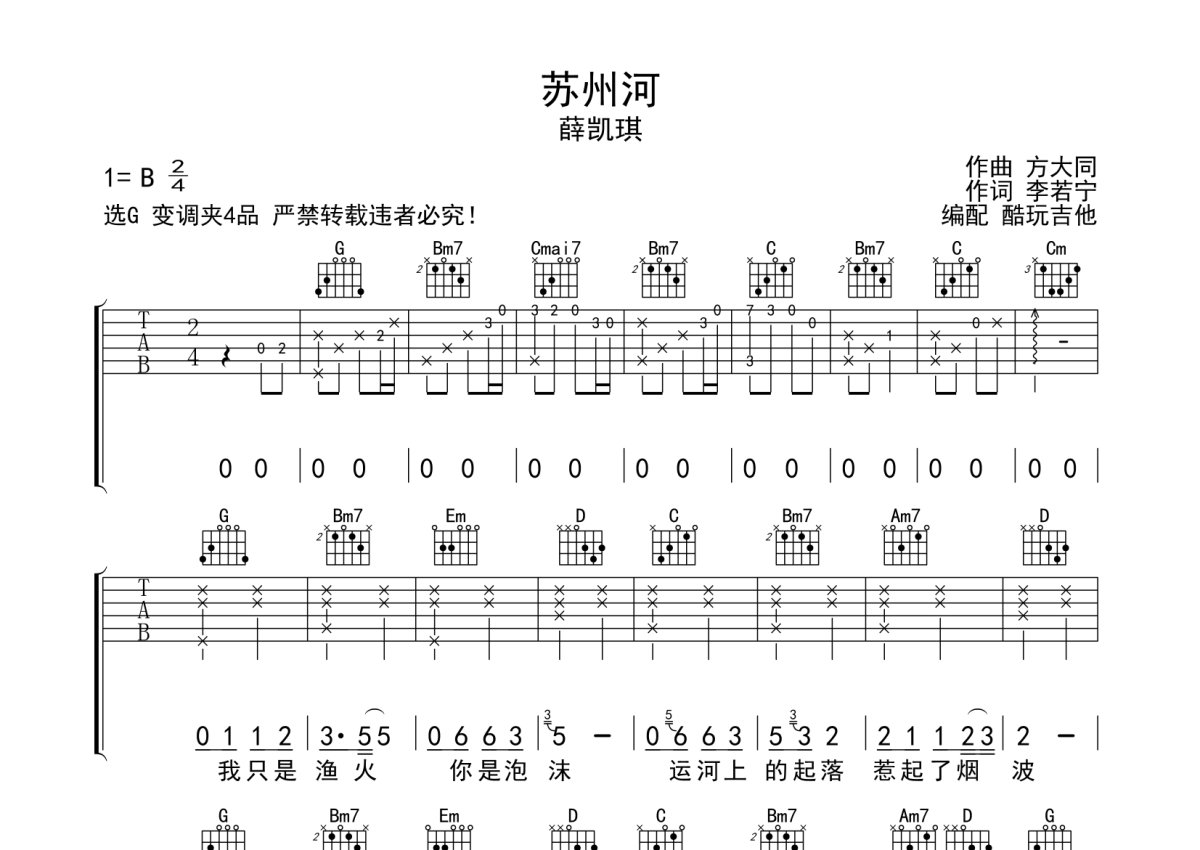 薛凯琪《苏州河》吉他谱 - G调弹唱六线谱