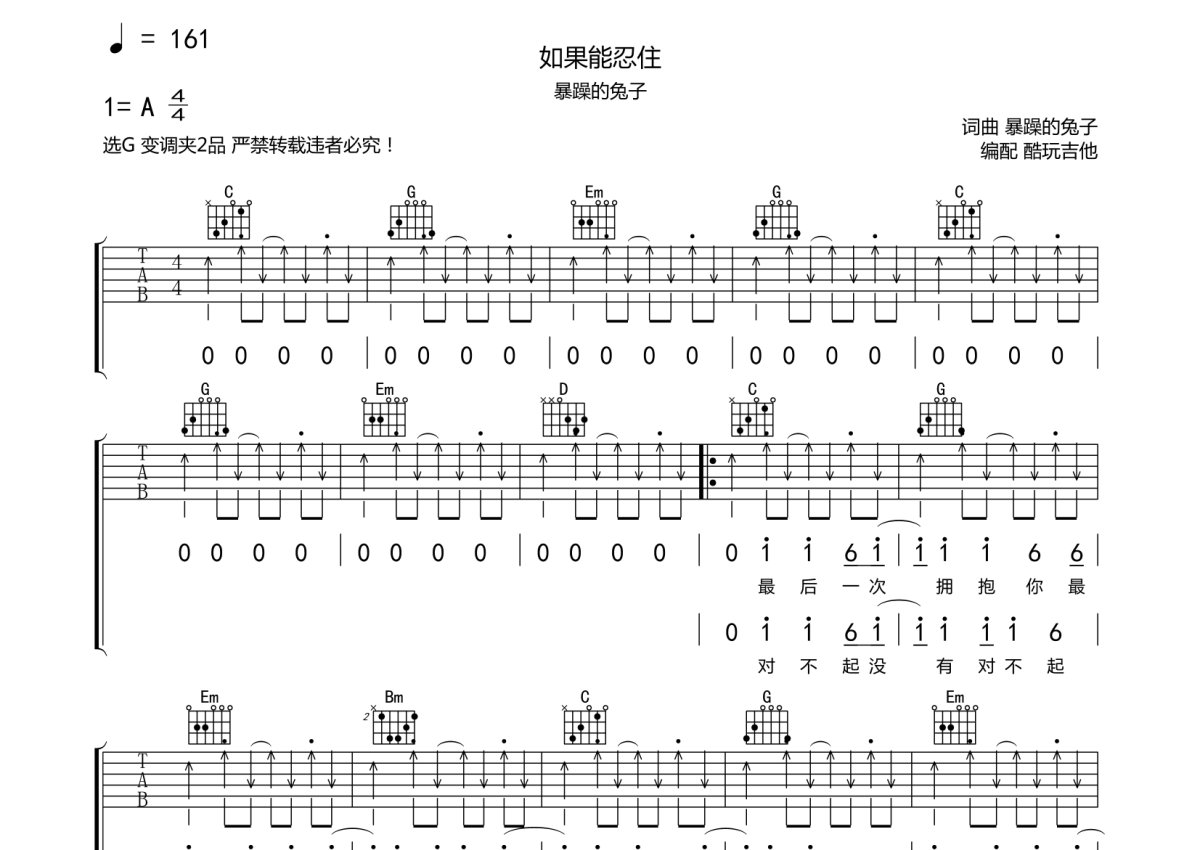 暴躁的兔子《如果能忍住》吉他谱 - G调弹唱六线谱