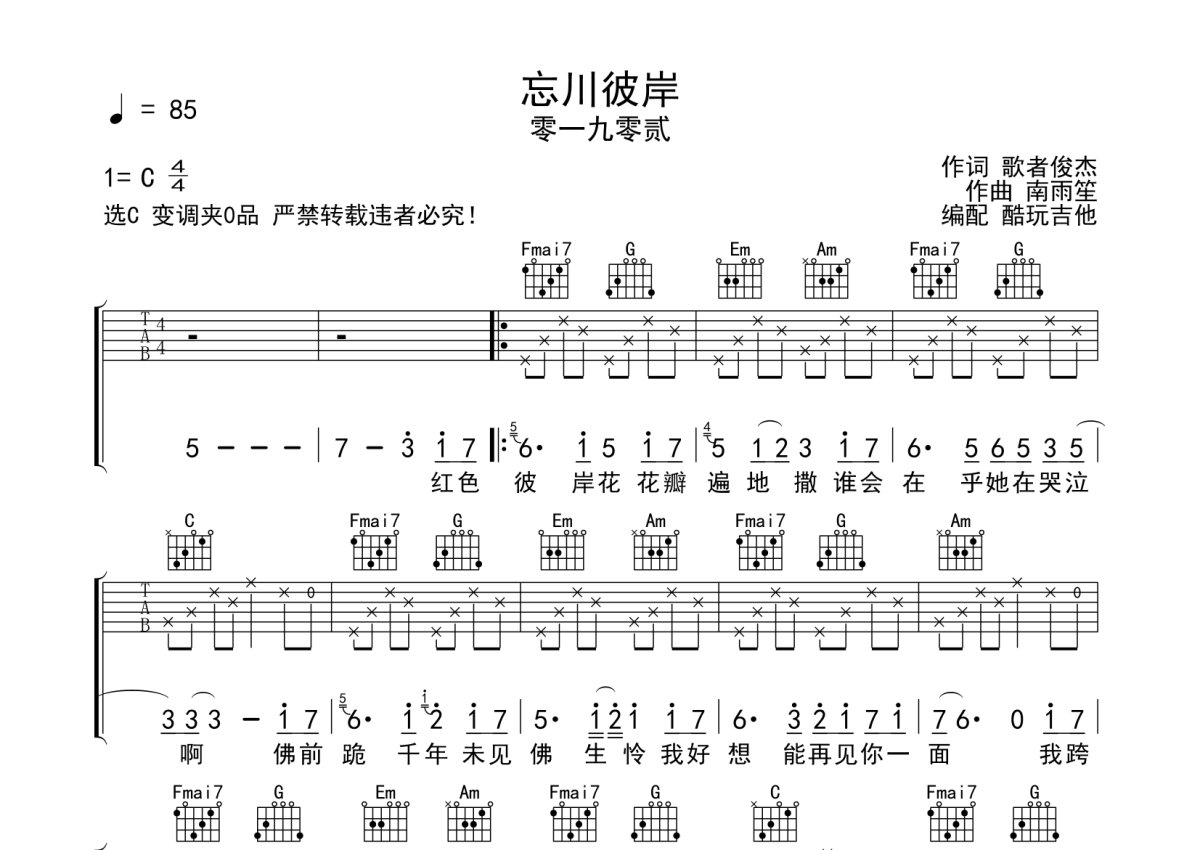 零一九零贰《忘川彼岸》吉他谱 - C调弹唱六线谱