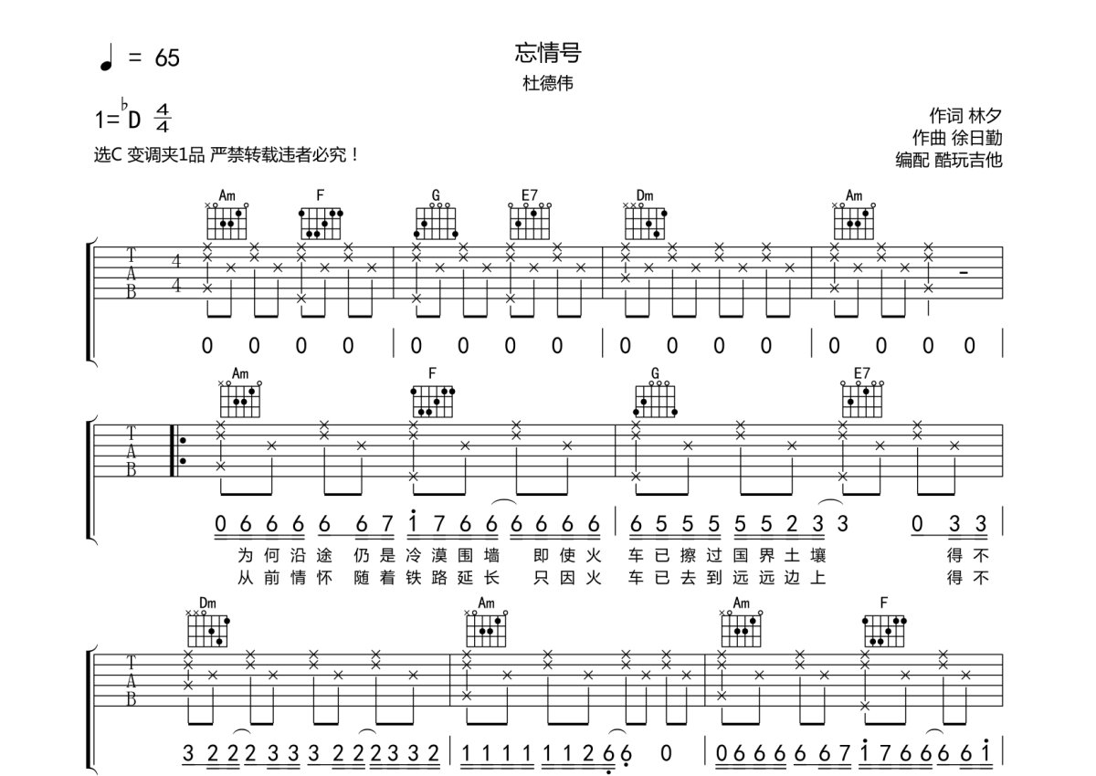 杜德伟《忘情号》吉他谱 - C调弹唱六线谱