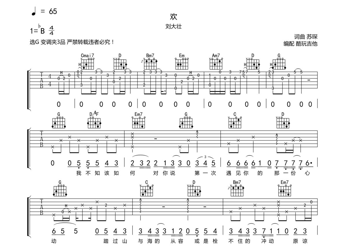 刘大壮《欢》吉他谱 - G调弹唱六线谱