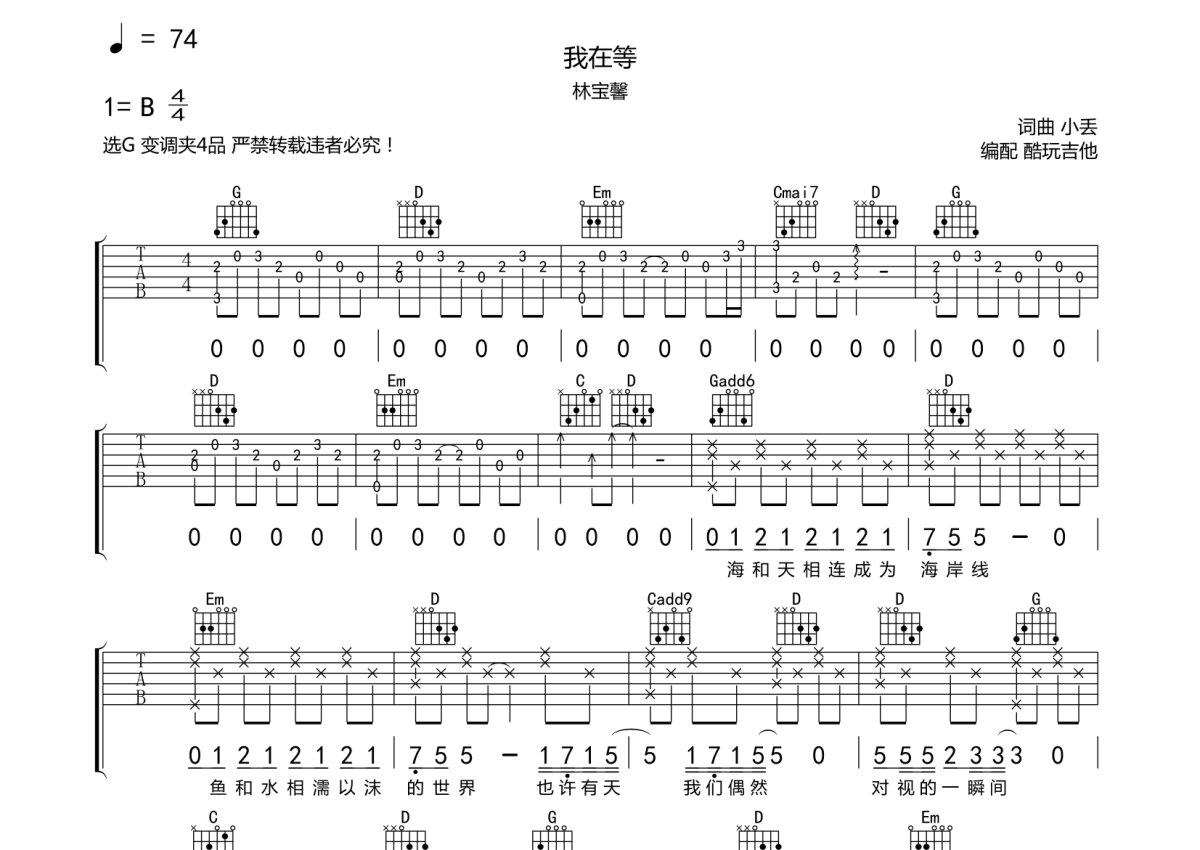 林宝馨《我在等》吉他谱 - G调弹唱六线谱