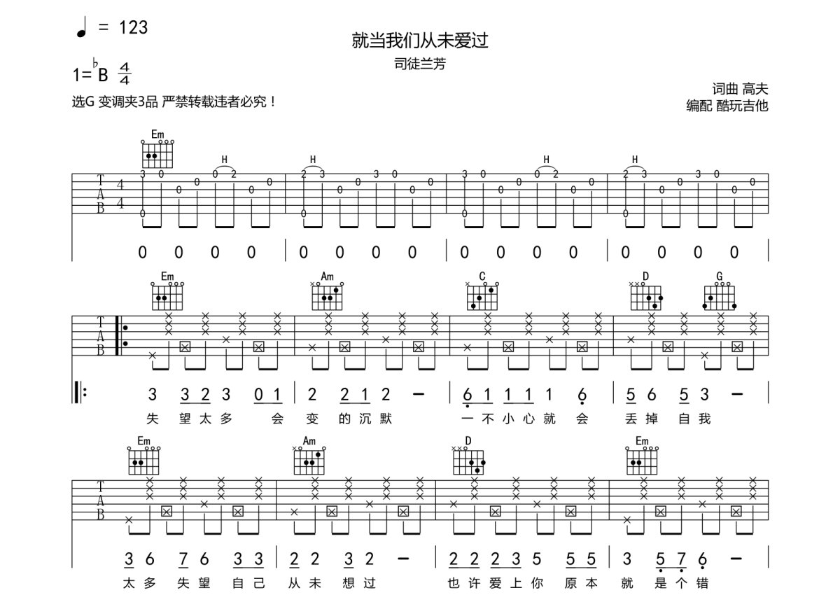 司徒兰芳《就当我们从未爱过》吉他谱 - G调弹唱六线谱