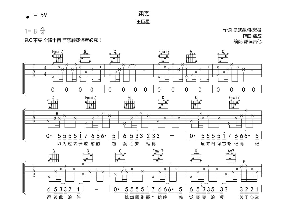 王巨星《谜底》吉他谱 - C调弹唱六线谱
