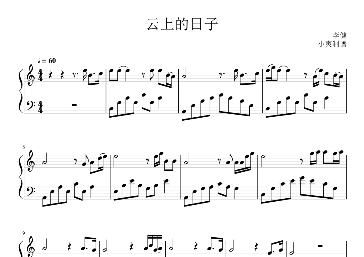 李健《云上的日子》钢琴谱