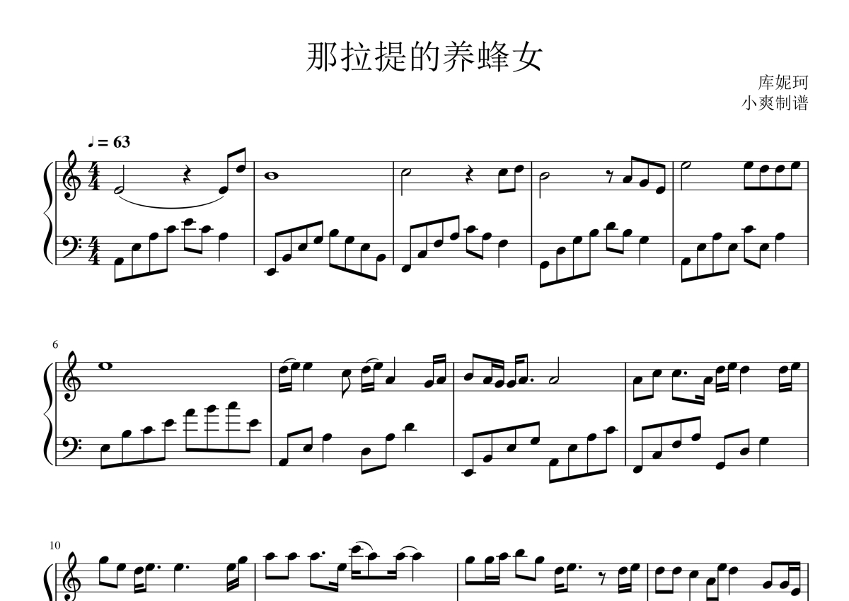 库妮珂《那拉提的养蜂女》钢琴谱