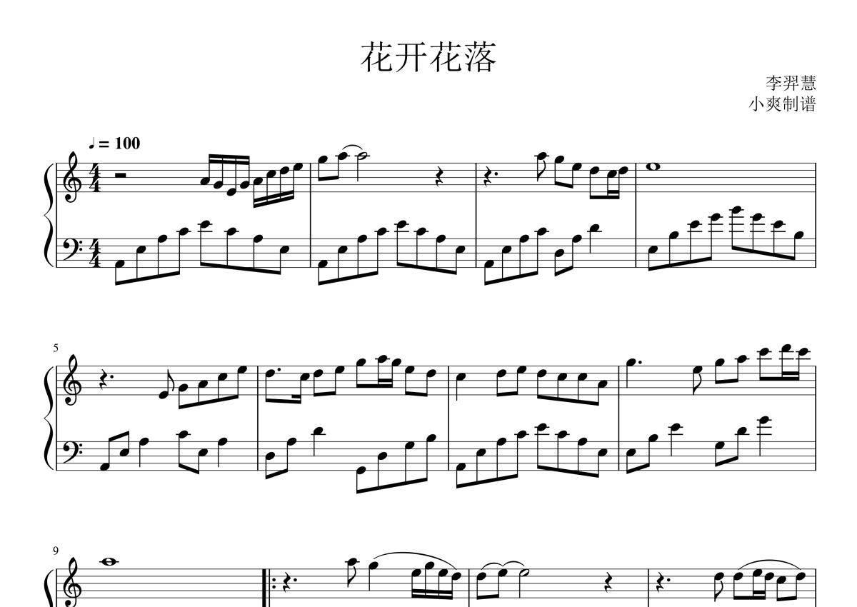 《花开花落》是李羿慧演唱的一首歌曲,这份钢琴谱共有两张高清图谱,图谱由 @酷玩吉他 编配上传,曲谱配备了相关的音频提供试听,使用这份花开花落钢琴谱,可以让你更加方便地掌握这首歌曲的演奏技巧,快来尝试吧。李羿慧《花开花落》钢琴谱。