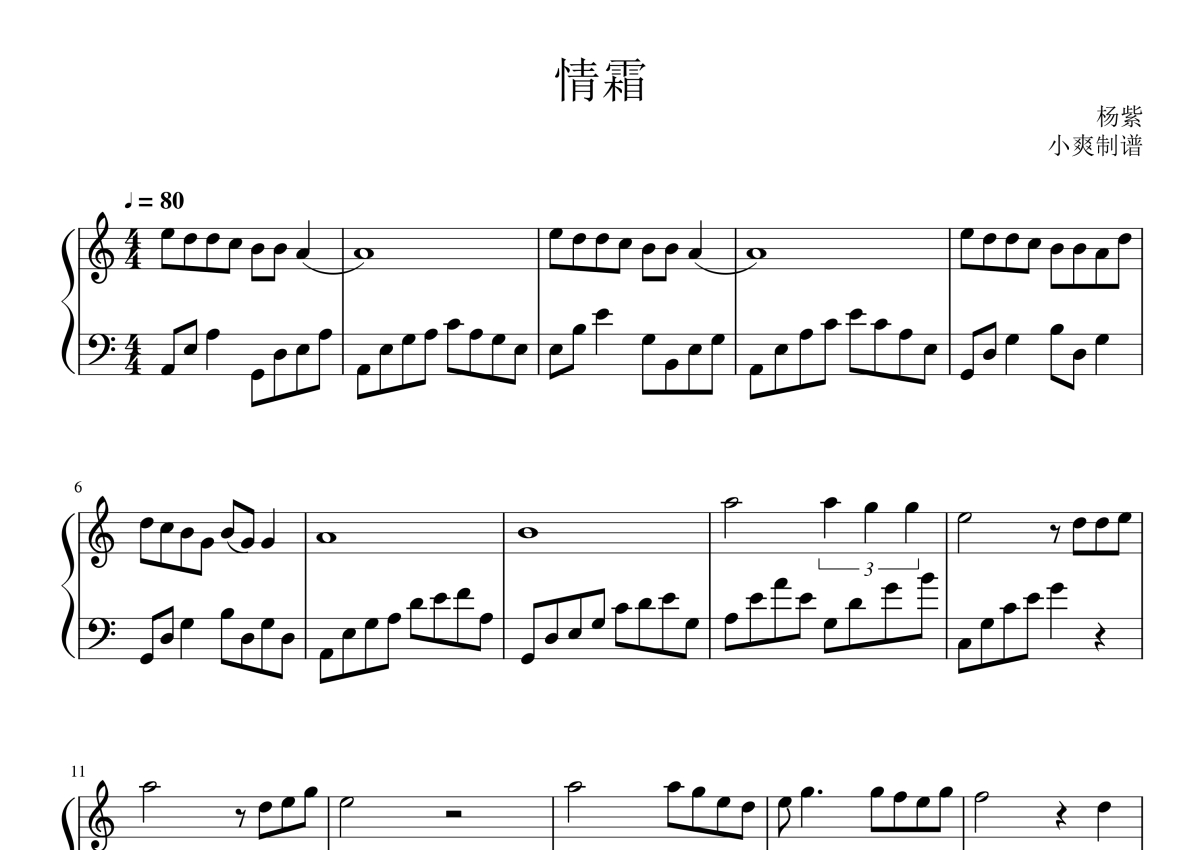 杨紫《情霜》钢琴谱
