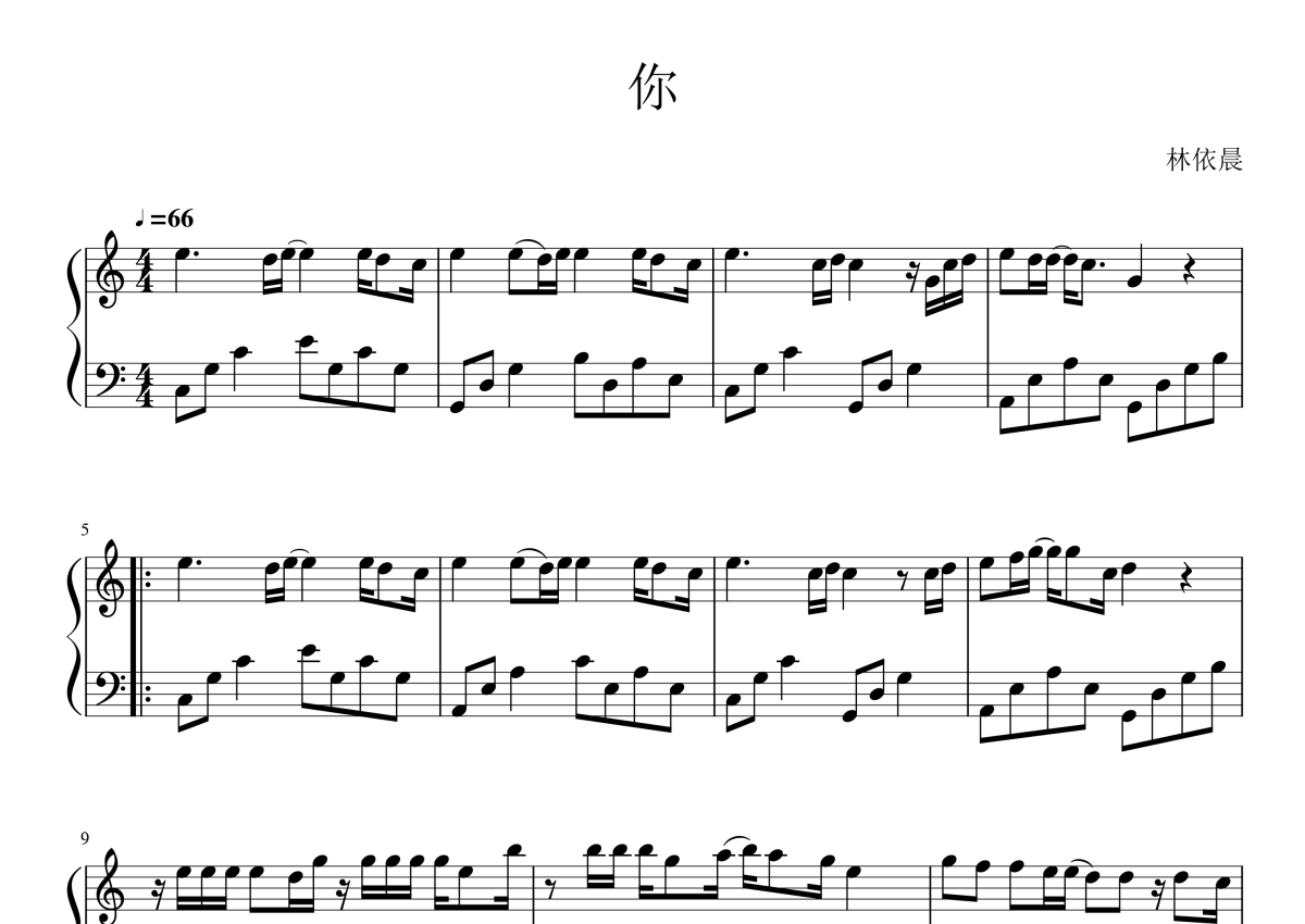 林依晨《你》钢琴谱