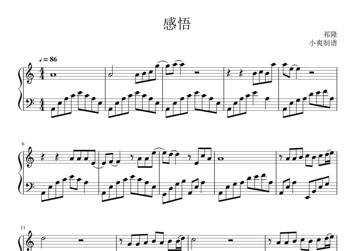 祁隆《感悟》钢琴谱
