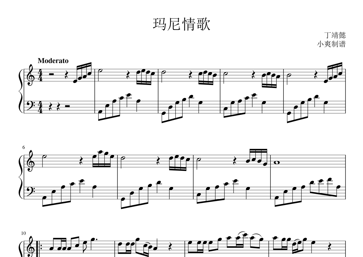 《玛尼情歌》是丁靖懿演唱的一首歌曲,这份钢琴谱共有三张高清图谱,图谱由 @酷玩吉他 编配上传,曲谱配备了相关的音频提供试听,使用这份玛尼情歌钢琴谱,可以让你更加方便地掌握这首歌曲的演奏技巧,快来尝试吧。丁靖懿《玛尼情歌》钢琴谱。