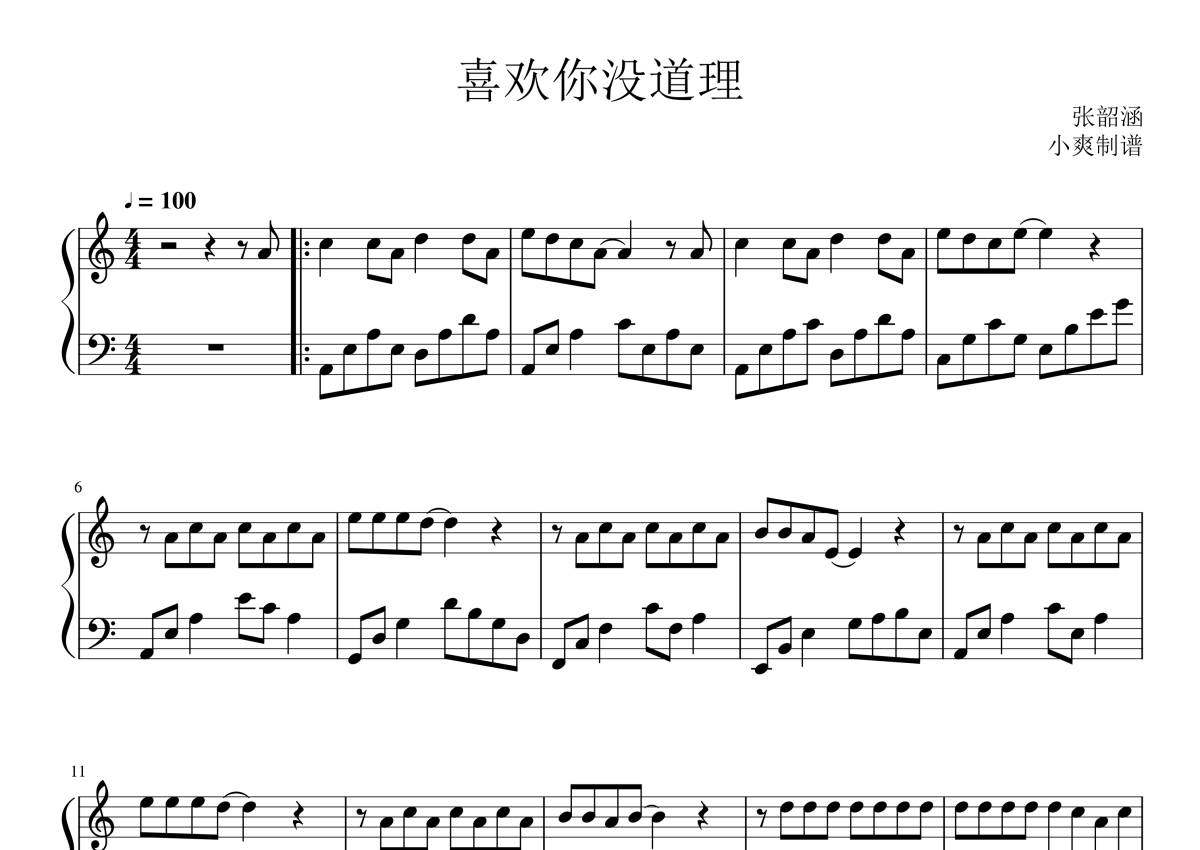 《喜欢你没道理》是张韶涵演唱的一首歌曲,这份钢琴谱共有两张高清图谱,图谱由 @酷玩吉他 编配上传,曲谱配备了相关的音频提供试听,使用这份喜欢你没道理钢琴谱,可以让你更加方便地掌握这首歌曲的演奏技巧,快来尝试吧。张韶涵《喜欢你没道理》钢琴谱。