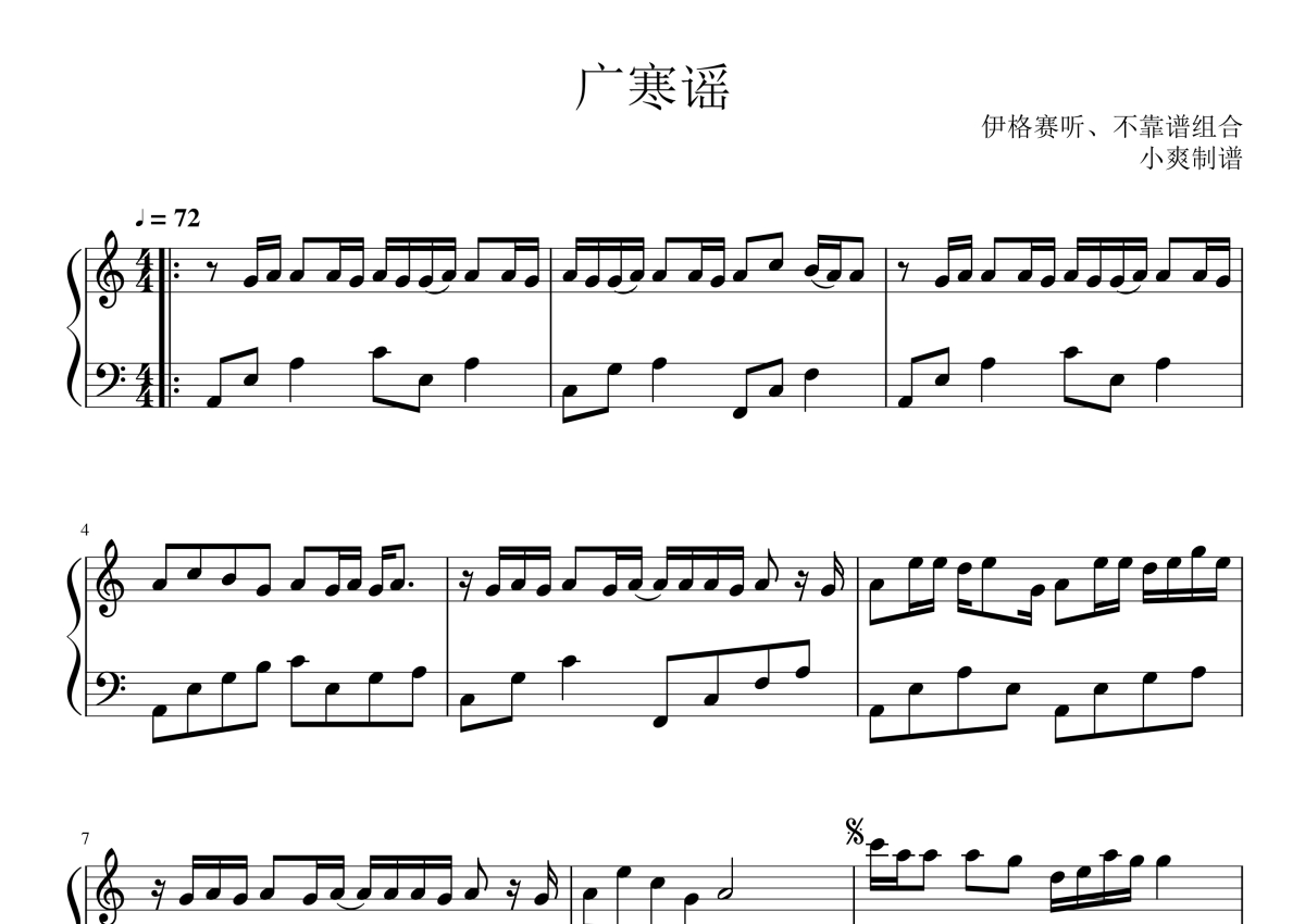 伊格赛听&不靠谱组《广寒谣》钢琴谱