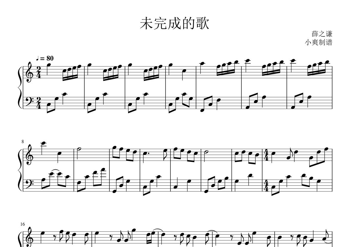 薛之谦《未完成的歌》钢琴谱