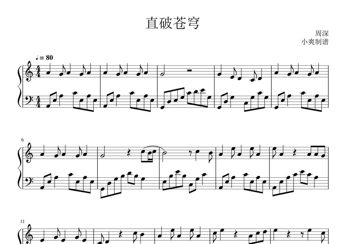 周深《直破苍穹》钢琴谱