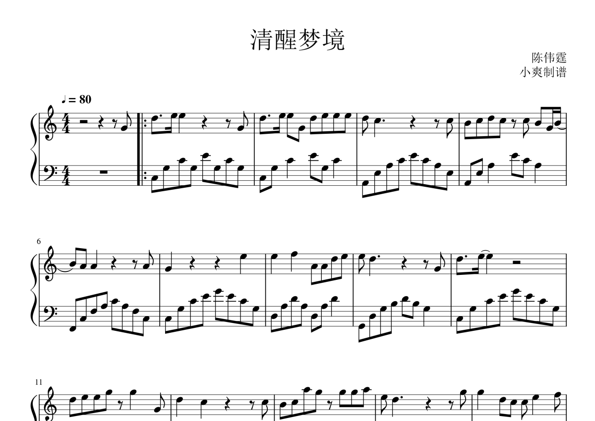 陈伟霆《清醒梦境》钢琴谱
