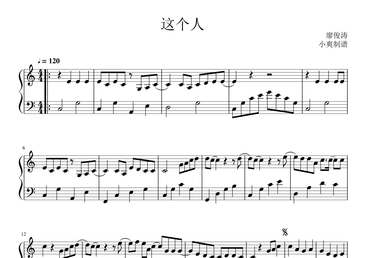 廖俊涛《这个人》钢琴谱