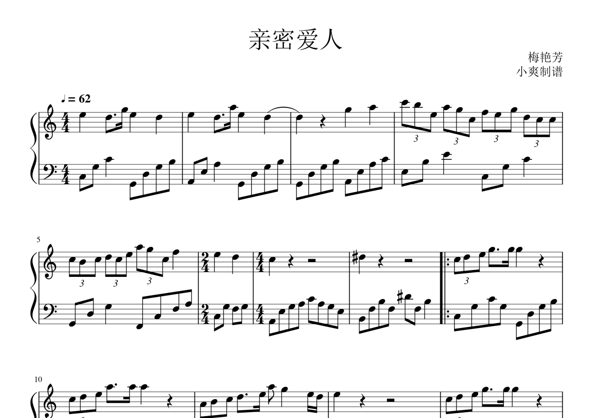 梅艳芳《亲密爱人》钢琴谱