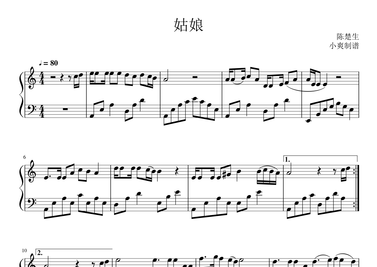 陈楚生《姑娘》钢琴谱