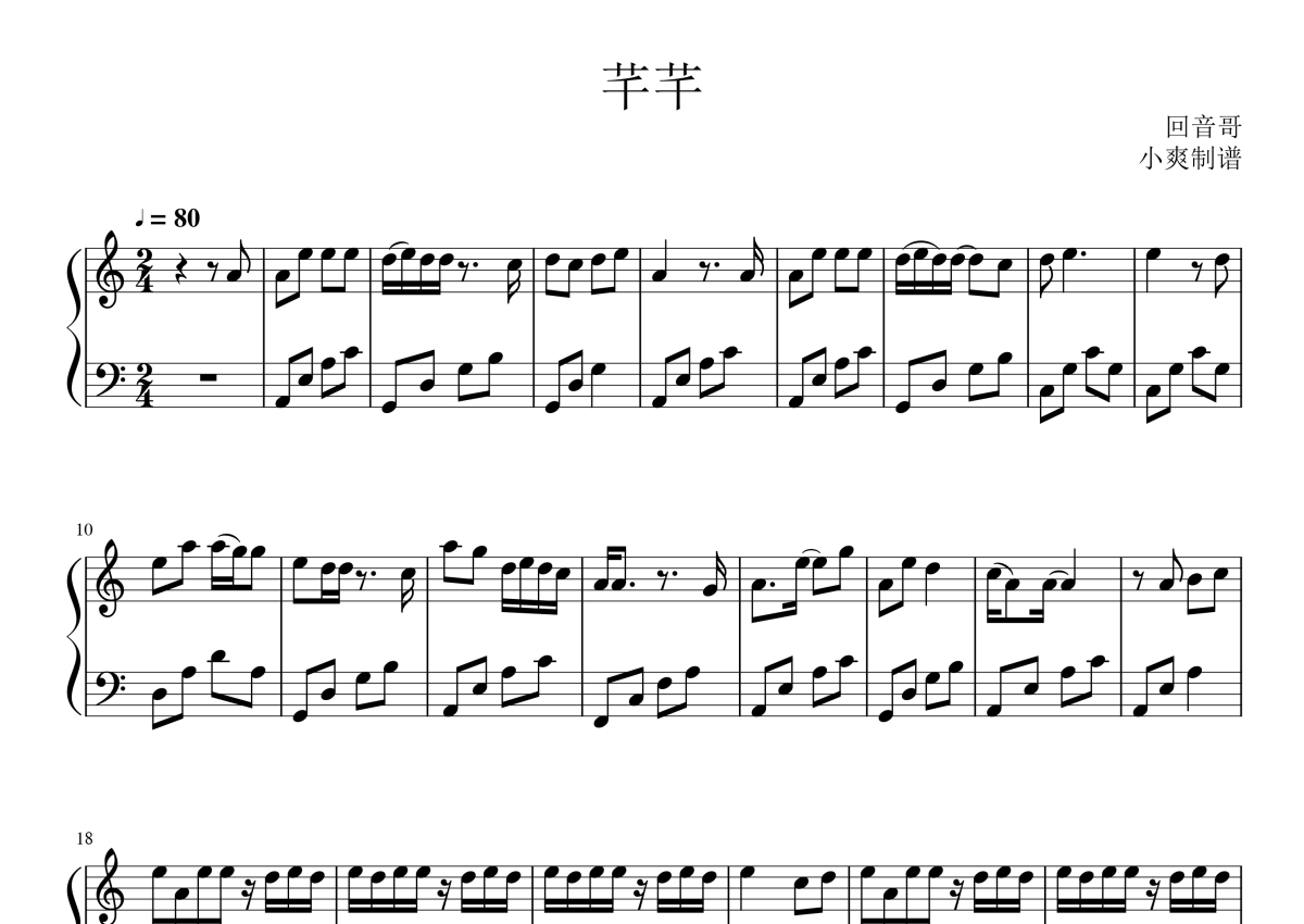 回音哥《芊芊》钢琴谱
