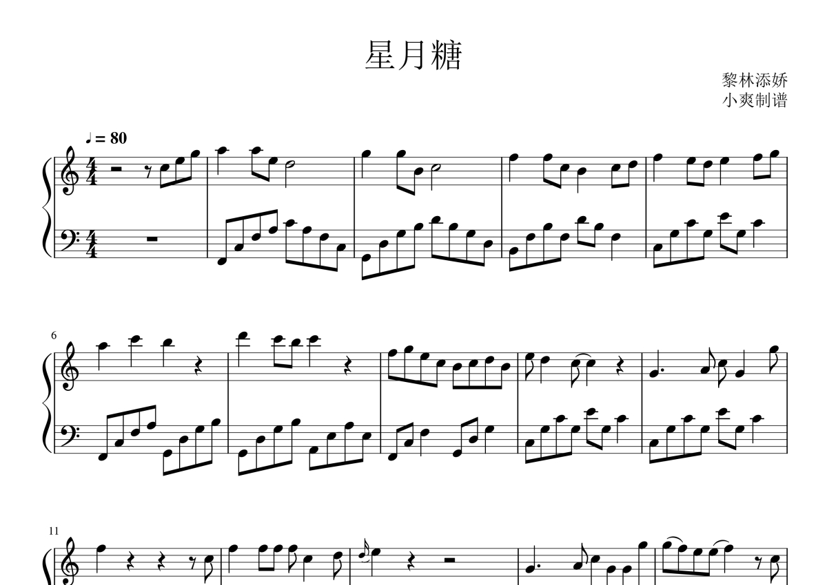黎林添娇《星月糖》钢琴谱