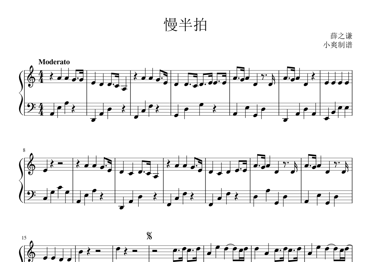 《慢半拍》是薛之谦演唱的一首歌曲,这份钢琴谱共有两张高清图谱,图谱由 @酷玩吉他 编配上传,曲谱配备了相关的音频提供试听,使用这份慢半拍钢琴谱,可以让你更加方便地掌握这首歌曲的演奏技巧,快来尝试吧。薛之谦《慢半拍》钢琴谱。