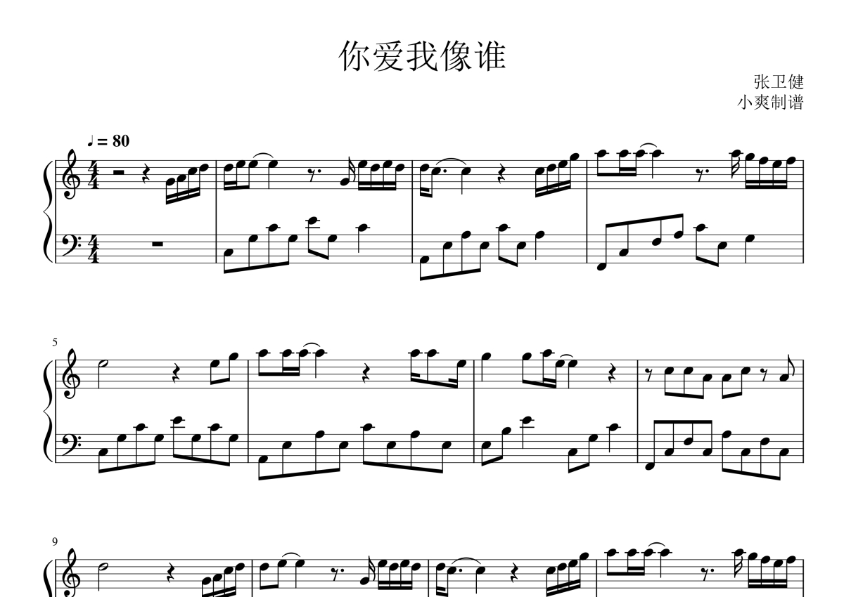 张卫健《你爱我像谁》钢琴谱