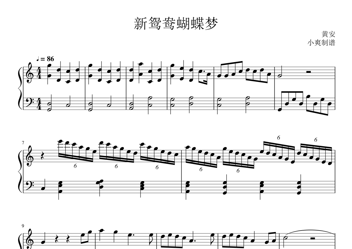 《新鸳鸯蝴蝶梦》是许嵩演唱的一首歌曲,这份钢琴谱共有两张高清图谱,图谱由 @酷玩吉他 编配上传,曲谱配备了相关的音频提供试听,使用这份新鸳鸯蝴蝶梦钢琴谱,可以让你更加方便地掌握这首歌曲的演奏技巧,快来尝试吧。许嵩《新鸳鸯蝴蝶梦》钢琴谱。