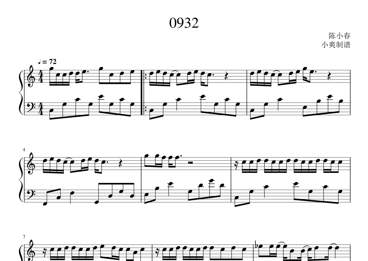 陈小春《0932》钢琴谱