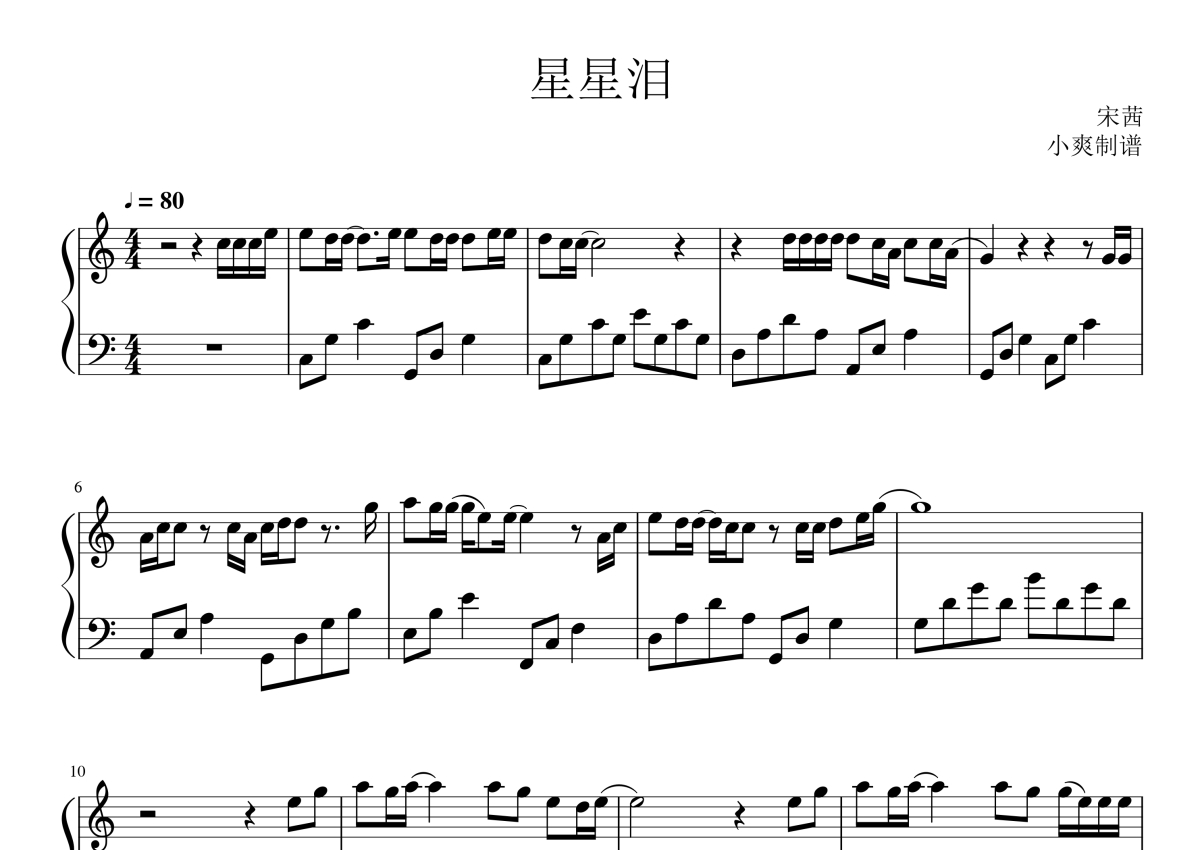 宋茜《星星泪》钢琴谱