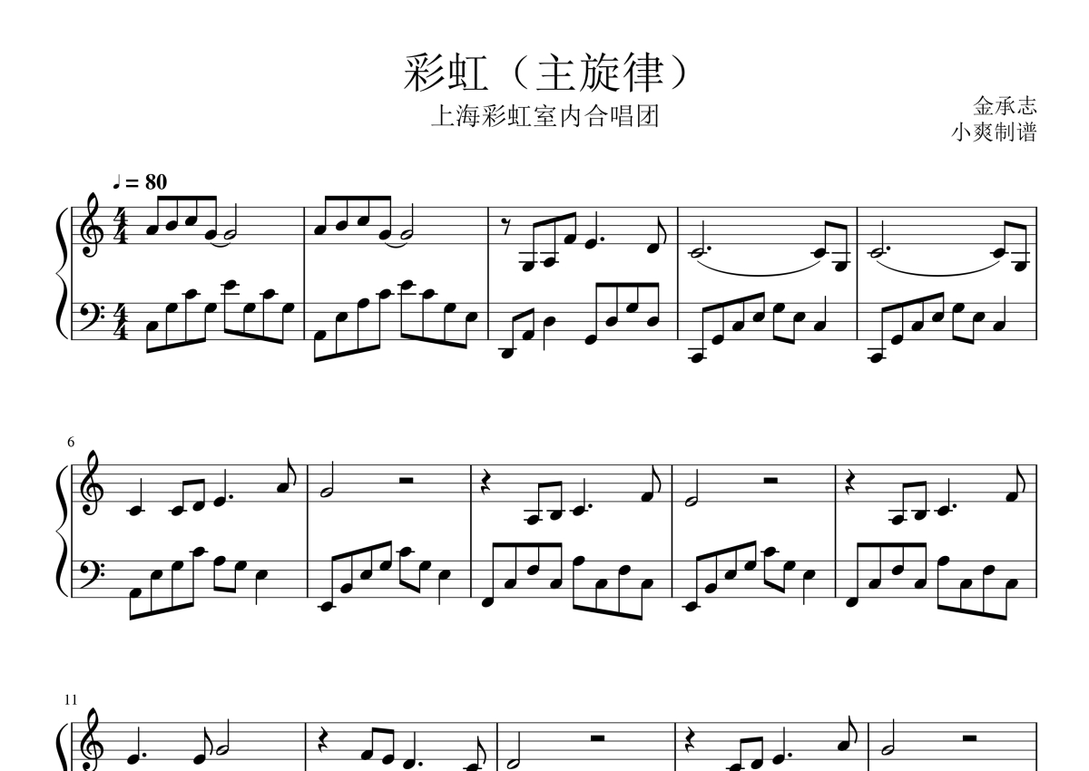 上海彩虹室内合唱团《彩虹》钢琴谱 - 主旋律