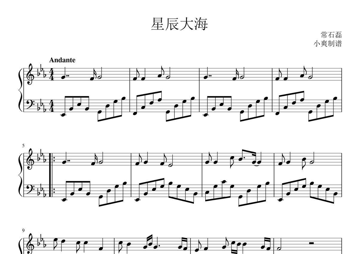 《星辰大海》是电影频道(青年演员计划)主题曲演唱的一首歌曲,这份钢琴谱共有两张高清图谱,图谱由 @酷玩吉他 编配上传,曲谱配备了相关的音频提供试听,使用这份星辰大海钢琴谱,可以让你更加方便地掌握这首歌曲的演奏技巧,快来尝试吧。电影频道(青年演员计划)主题曲《星辰大海》钢琴谱。