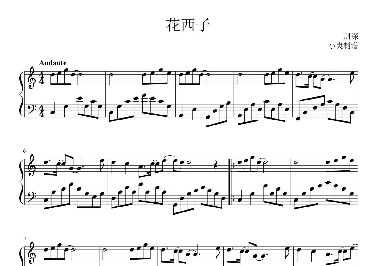 周深《花西子》钢琴谱