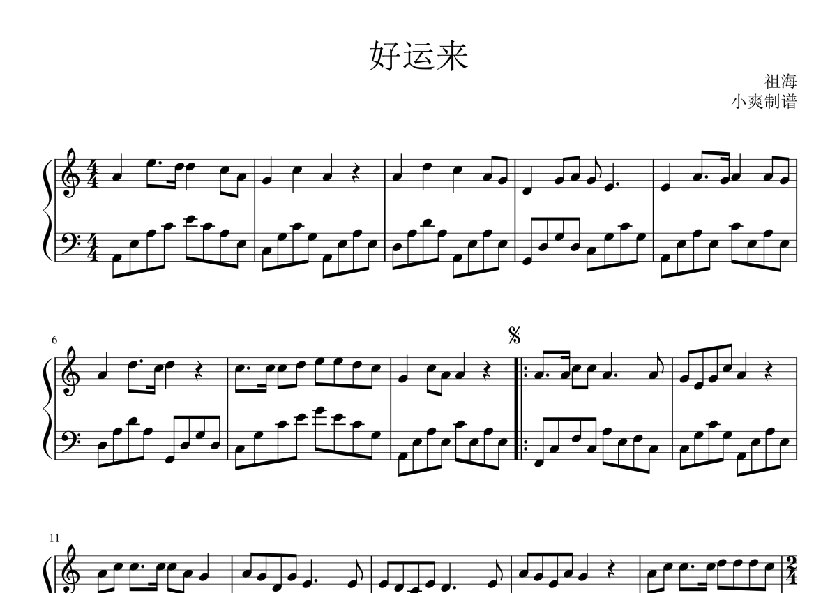 祖海《好运来》钢琴谱