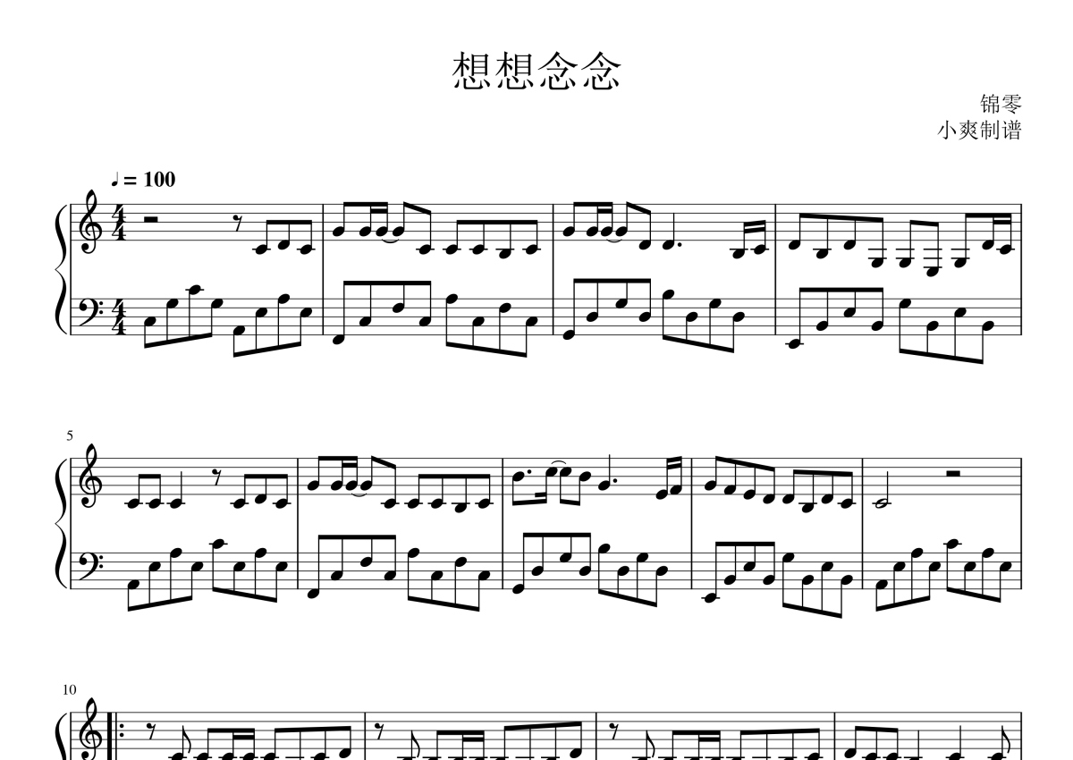 锦零《想想念念》钢琴谱