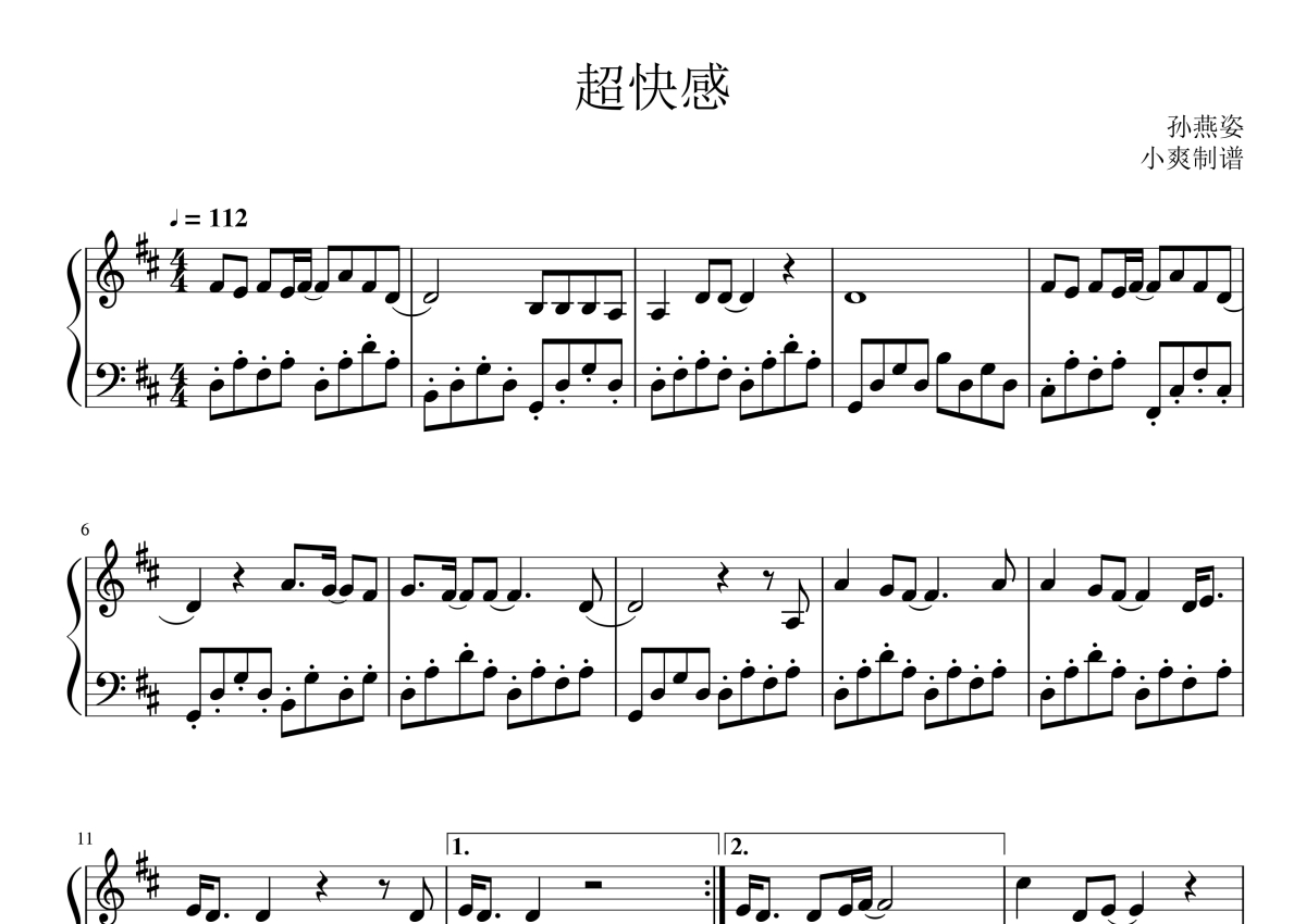 《超快感》是孙燕姿演唱的一首歌曲,这份钢琴谱共有两张高清图谱,图谱由 @酷玩吉他 编配上传,使用这份超快感钢琴谱,可以让你更加方便地掌握这首歌曲的演奏技巧,快来尝试吧。孙燕姿《超快感》钢琴谱。