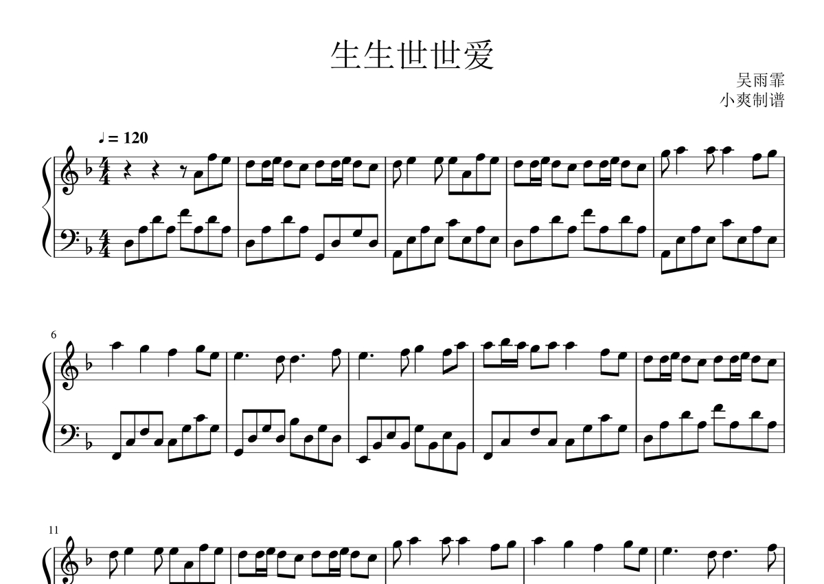 吴雨霏《生生世世爱》钢琴谱