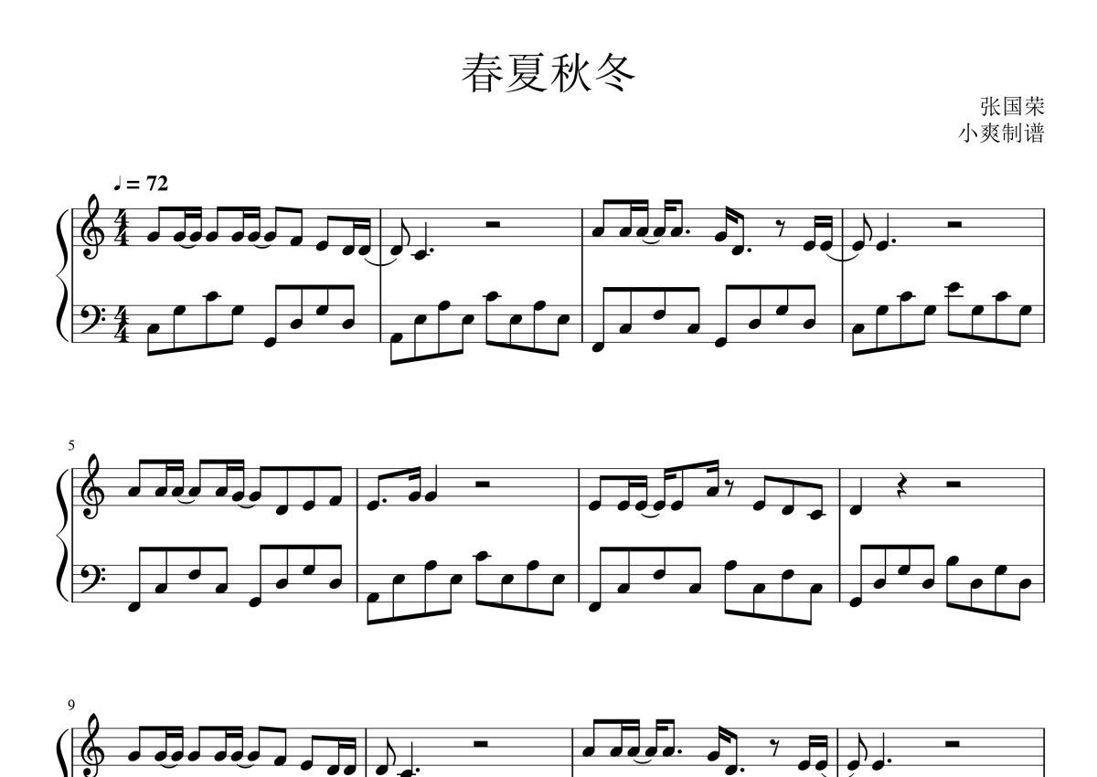 《春夏秋冬》是张国荣演唱的一首歌曲,这份钢琴谱共有两张高清图谱,图谱由 @酷玩吉他 编配上传,使用这份春夏秋冬钢琴谱,可以让你更加方便地掌握这首歌曲的演奏技巧,快来尝试吧。张国荣《春夏秋冬》钢琴谱。