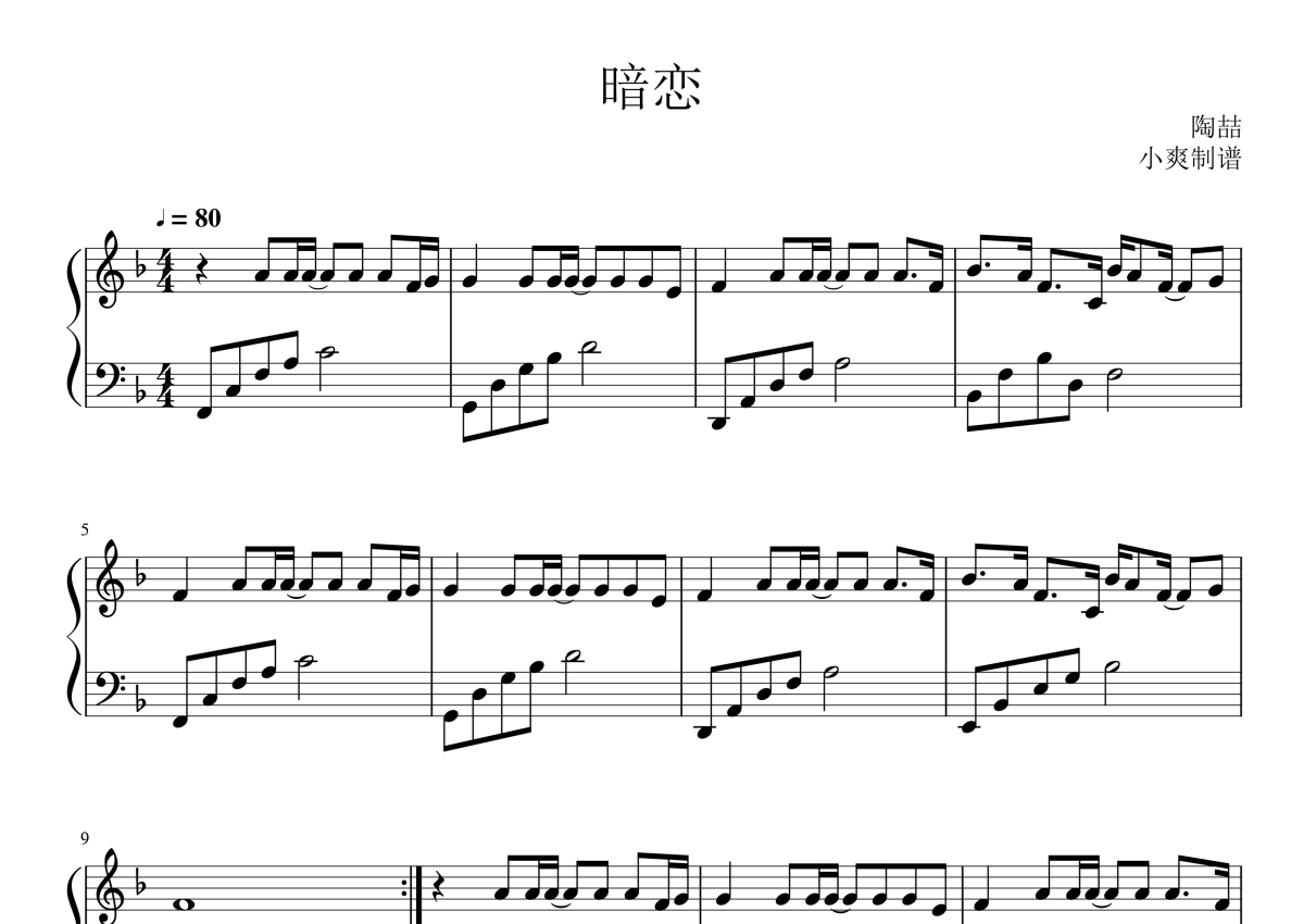 陶喆《暗恋》钢琴谱 - F调